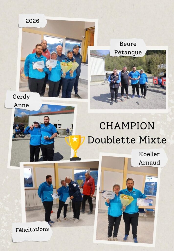 Victoire de la doublette composée de Anne GERDY et Arnaud KOELLER. Ils sont qualifiés pour participer au championnat national à AJACCIO les 27 et 28 juin prochain.